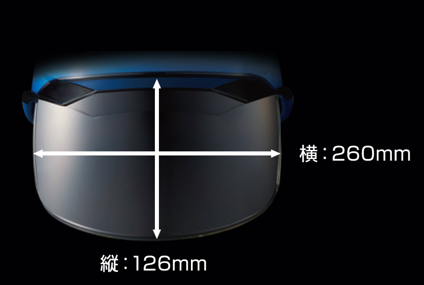 ・危険な飛来物・飛散物から目を保護する内蔵タイプのワイドシールド面を搭載。